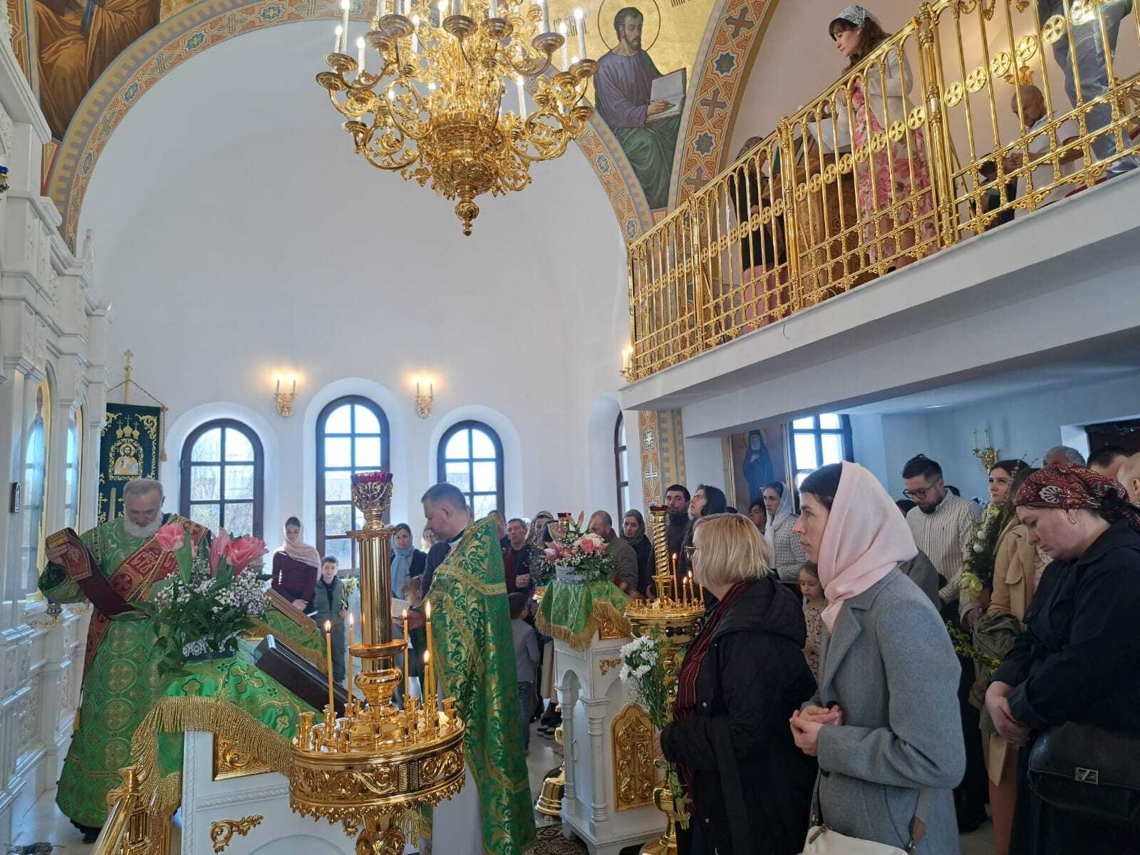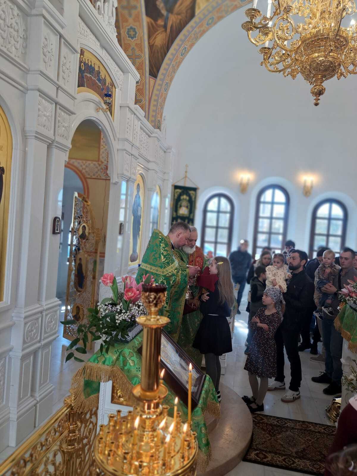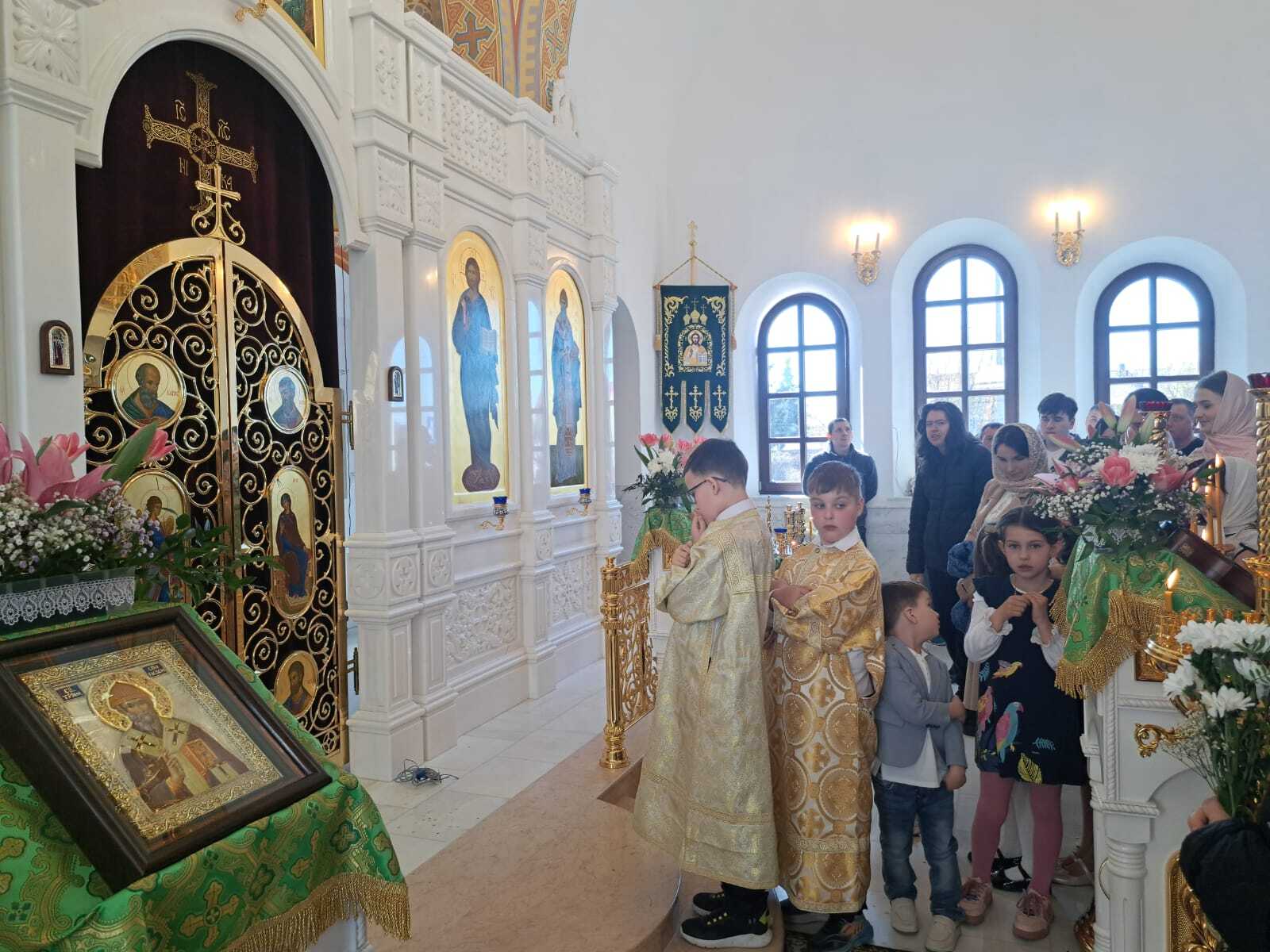 Świąteczną Boską Liturgię św. Jana Złotoustego celebrował nasz proboszcz, ks. Gabriel Białomyzy. Uczestniczyło w niej bardzo liczne grono wiernych, którzy wypełnili po brzegi naszą cerkiew. Wielu spośród nich przystąpiło również do sakramentu spowiedzi oraz Świętej Eucharystii.