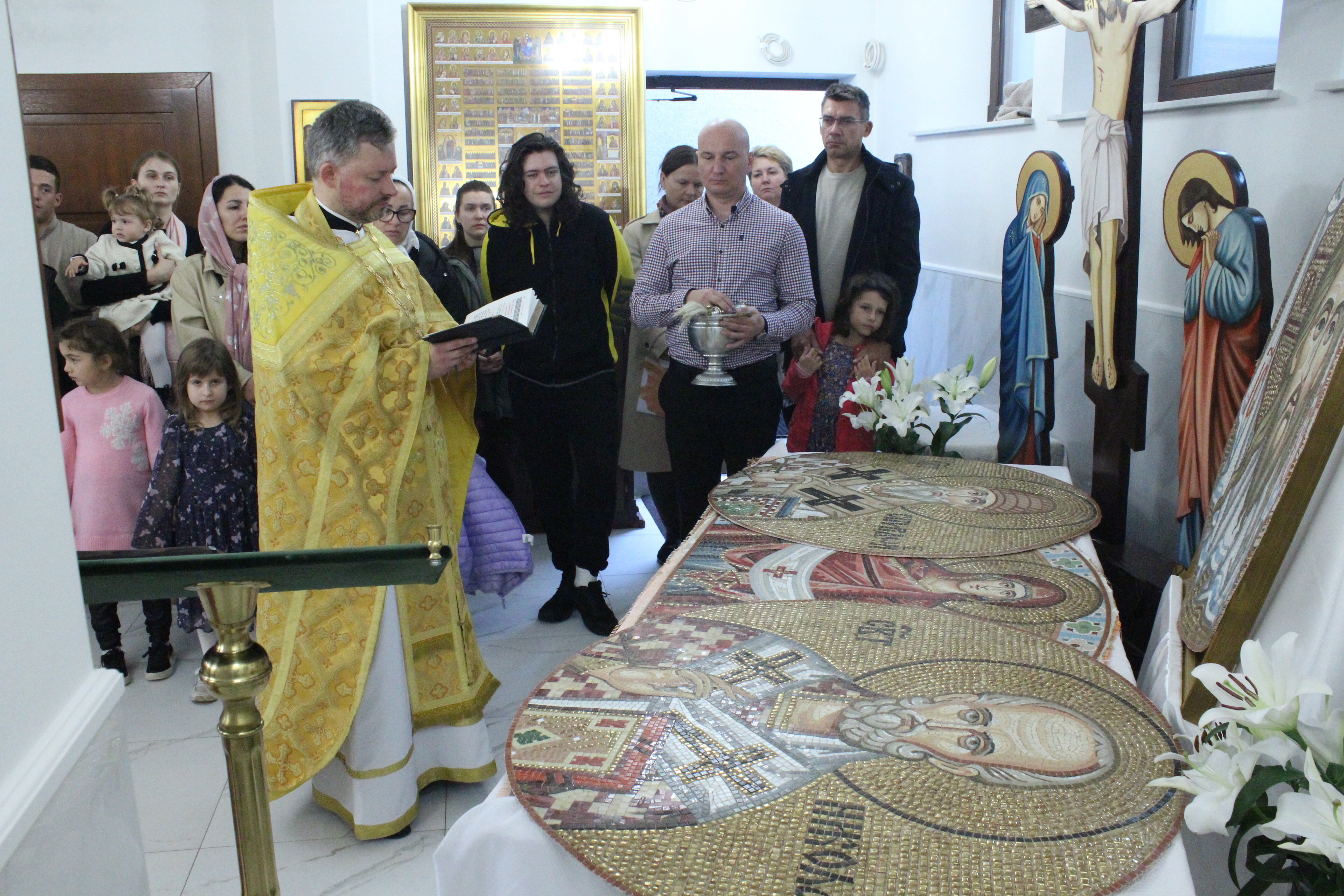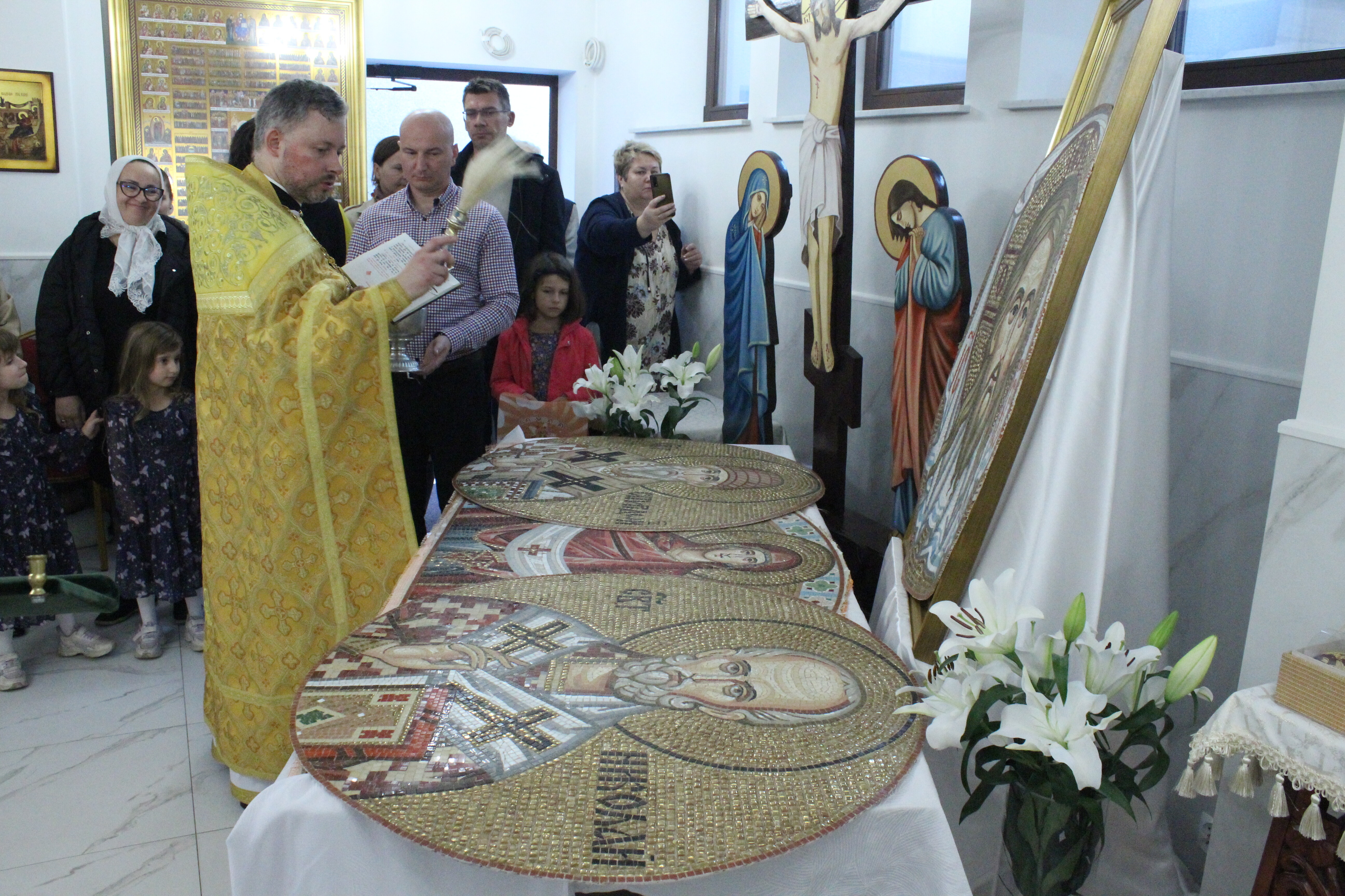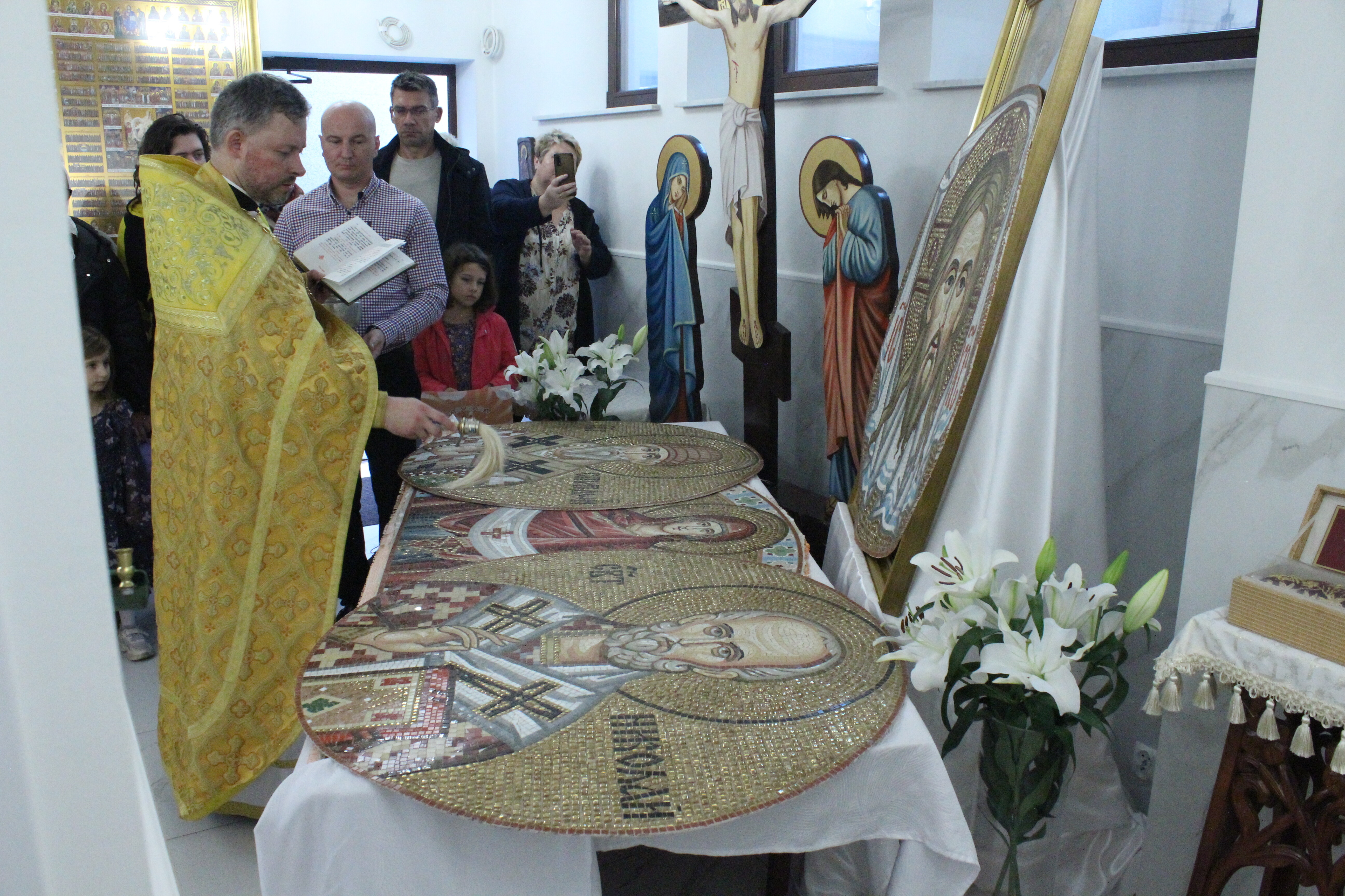 Podczas Liturgii poświęcenia dokonał proboszcz miejscowej parafii, a dla upamiętnienia podniosłości dzisiejszego wydarzenia, wybrzmiały tropariony ku czci Ikony Zbawiciela Nie Ręką Ludzką Uczynionego, Święta Opieki Matki Bożej oraz Świętych Hierarchów Spirydona i Mikołaja.