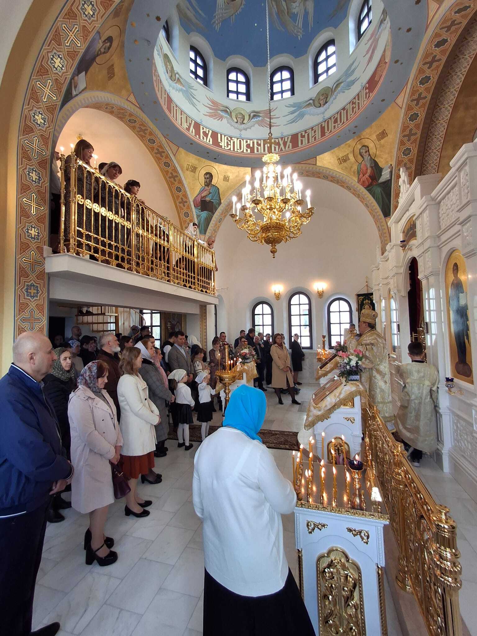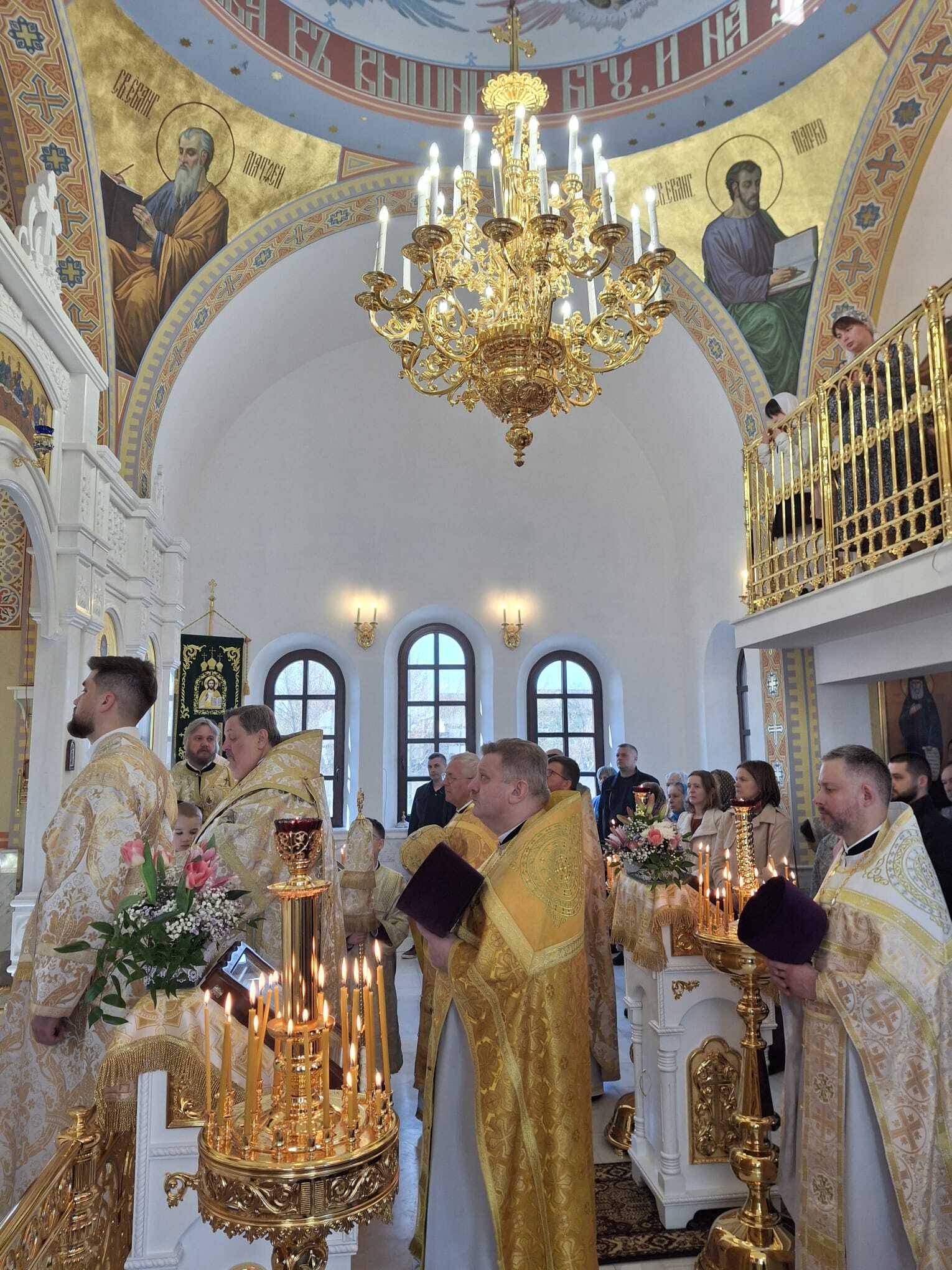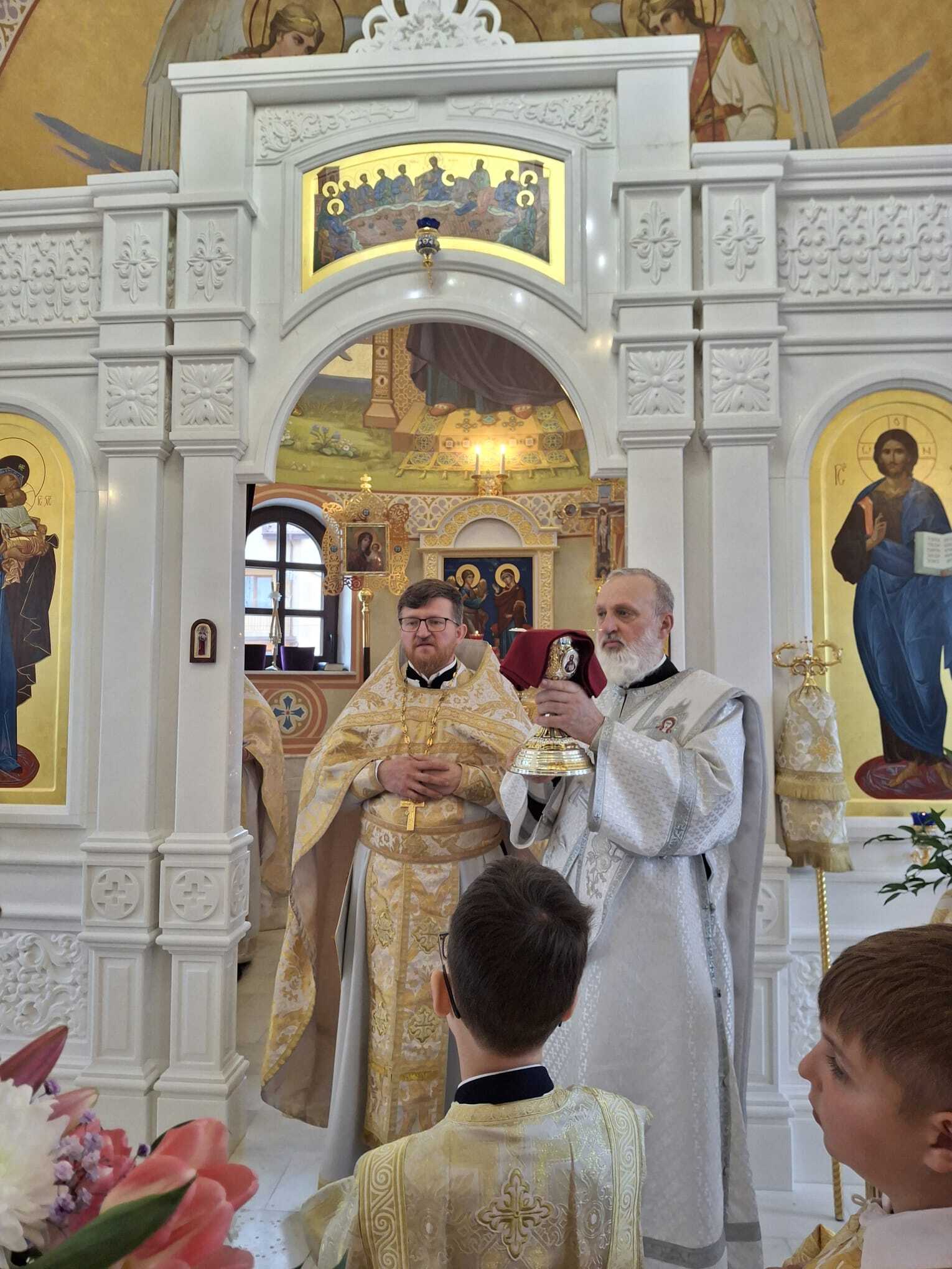 Przed liturgią Ekscelencję przywitały kolejno dzieci, starosta oraz proboszcz – ks. Gabriel Białomyzy. Podczas sprawowania Boskiej Liturgii Władyce asystowało przybyłe oraz miejscowe duchowieństwo. W okolicznościowym słowie do wiernych, Arcypasterz podkreślił wyjątkowy wymiar święta Soboty Łazarza, które znajduje się w szczególnym liturgicznym czasie pomiędzy Świętą Czterdziesiątnicą, a Wielkim Tygodniem. Porównał wskrzeszenie sprawiedliwego Łazarza do nieustannej, duchowej pracy nad własnym życiem, co może mieć miejsce w niedawno przywróconej do życia parafii, której strukturalne początki rozpoczęły się 10 lat temu. Odbiorcami liturgii okazali się licznie zebrani na nabożeństwie miejscowi, jak również przybyli wierni, czego wyrazem było wspólne uczestnictwo w świętej Eucharystii.